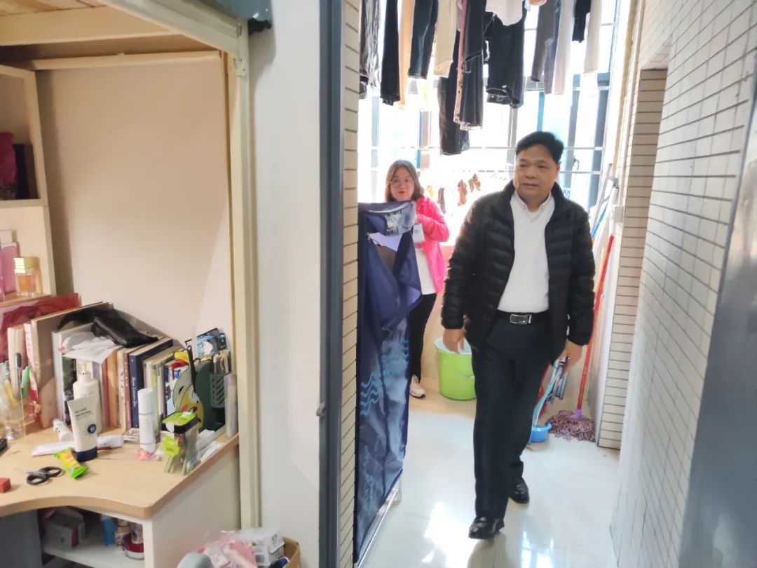 梁星全带领辅导员们进入学生宿舍进行仔细排查,主要针对检查电煮锅,电磁炉,热水壶等违规电器。在检查过程中,梁星全叮嘱同学们要养成良好的生活习惯,重视消防安全,注意用电安全,希望同学们能够规范日常行为,遵守学校规章制度,共同打造良好的校园安全环境,此次宿舍安全检查活动,不仅加强了同学们的纪律意识和安全意识。也更好的保障同学们在宿舍的用电安全。