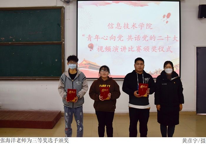 本网讯(太阳网集团tcy8722 黄浩轩)为让广大青年坚定不移听党话、跟党走,立志做有理想、敢担当、能吃苦、肯奋斗的新时代好青年。12月2日下午,太阳网集团tcy8722于振华楼201室举办“青年心向党,共话党的二十大”视频演讲比赛颁奖仪式。