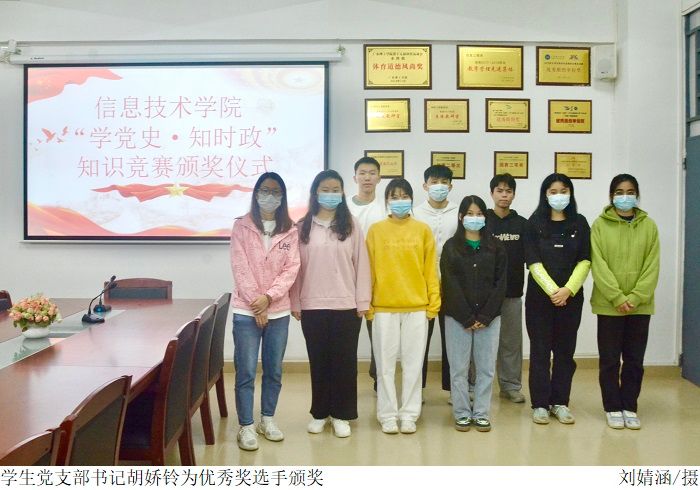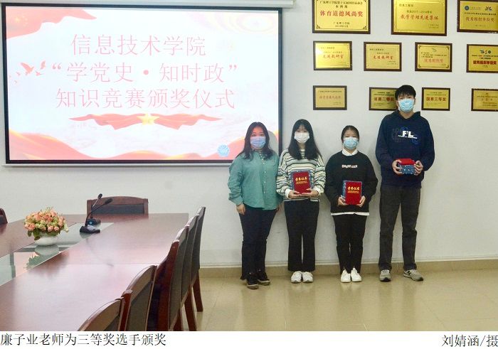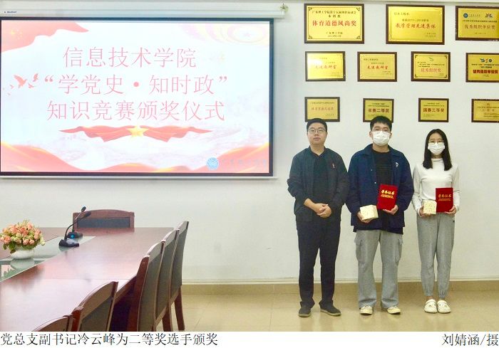 本网讯(太阳网集团tcy8722 陈志健)11月8日下午,太阳网集团tcy8722于振华楼203室举行“学党史·知时政”知识竞赛颁奖仪式,参与本次颁奖仪式的人员有党总支书记梁星全、党总支副书记冷云峰、学生党支部书记胡娇铃老师、廉子业老师以及获奖学生党员。