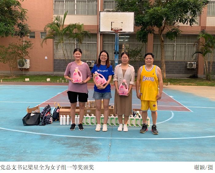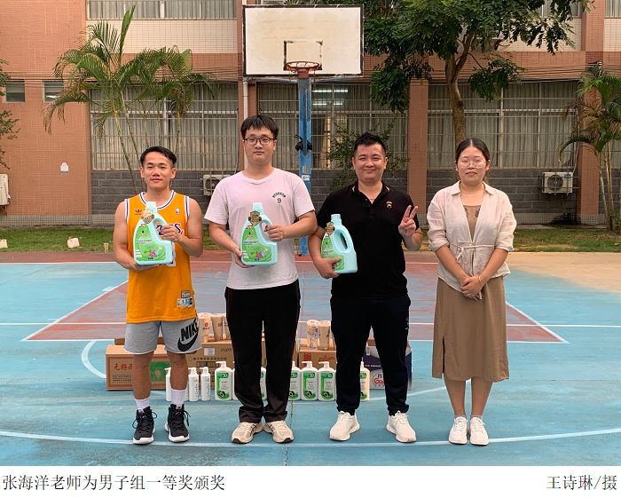 在活动中,老师们分男女组同时进行两分钟趣味投篮争霸赛,最后根据时间内投篮进球次数评选出了男女组一、二、三等奖以及参与奖,并在篮球场上进行了颁奖仪式。