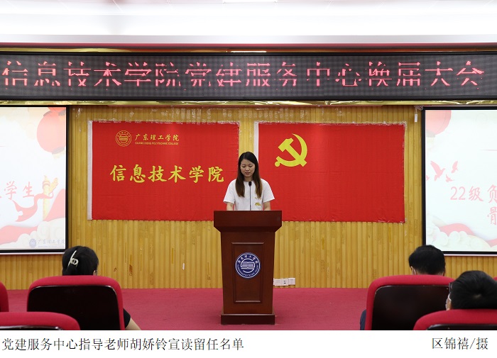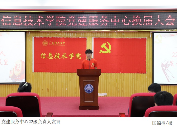 党建服务中心指导老师胡娇铃上台宣读了22级党建服务中心负责人以及学生骨干名单,同时希望新任骨干在接下来工作里能弘扬党建服务中心干实事的精神,同心协力,在上一届的基础上创新工作方法,不断完善工作。22级负责人也上台发表工作展望,保证认真完成接下来的每一份工作,表明自己将带领党建服务中心砥砺前行的信心与决心。