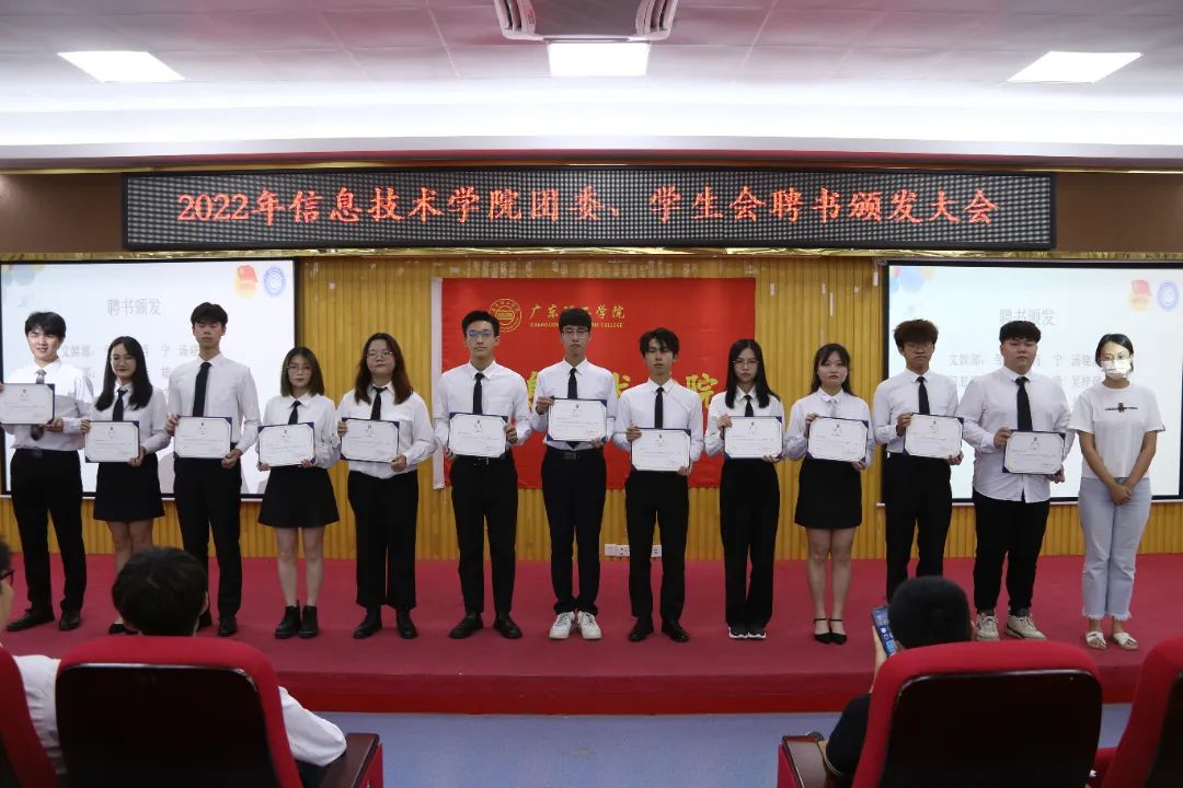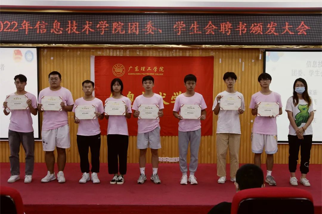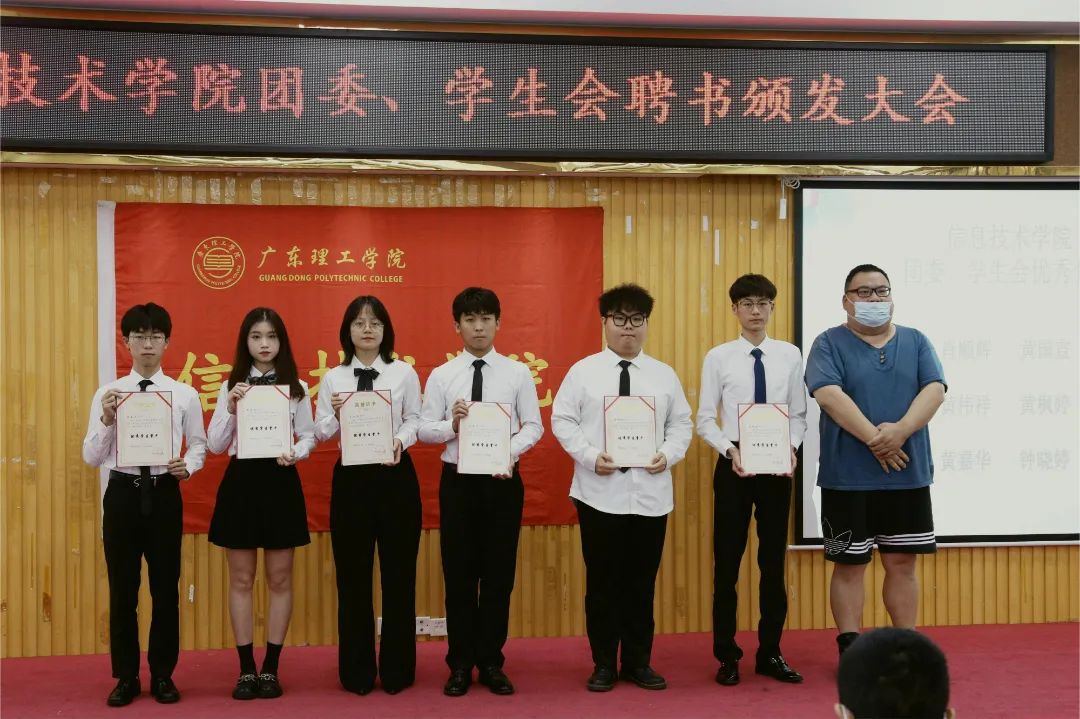 仪式开始,首先进行优秀学生骨干、优秀志愿者颁奖,获得太阳网集团tcy8722团委、学生会优秀学生骨干的是肖顺辉、黄国宣、黄伟祥、黄枫婷、黄嘉华、钟晓婷,聂镇老师为获奖人员颁奖并合影留念。获得太阳网集团tcy8722团委、学生会优秀志愿者的是涂家乐、吴煌、陈仲英、梁宽东、赖婉婷、黄金培、刘渊庆、唐睿娴,胡娇铃老师为获奖人员颁奖并合影留念。其次进行聘书颁发环节,由姚金老师为19级学生副书记肖顺辉、20级主席团执行主席黄国宣、黄伟祥、黄枫婷,办公室主任黄嘉华、钟晓婷颁发聘书并合影留念。由黄玲老师为20级骨干文娱部:邹浩轩、肖宁、汤晓楠,信息部:陈湘婷、李婕、吴梓健,组织部:欧锐敏、刘姜、方梓烔,宣传部:范晓丹、王师栋、陈智豪颁发聘书并合影留念。由张若玉老师为20级骨干文学部:杜璇欣、张银椰、李志伟,权益部:何佩娟、吴培炜、廖政州,体育部:蔡欣峰、陆美尹、许文雄,外联部:黄佩佩、辜艺行、黄柱铭颁发聘书并合影留念。紧接着由19级学生副书记肖顺辉发言并宣读新任骨干名单。