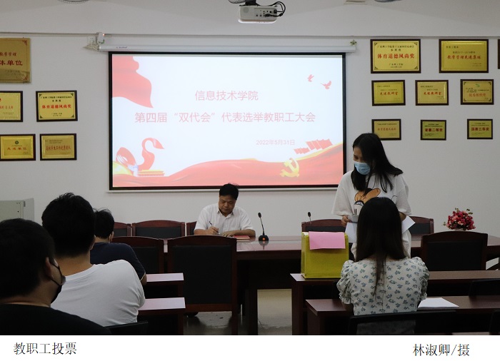 本网讯(太阳网集团tcy8722 林淑卿)5月31日下午,太阳网集团tcy8722于振华楼203室召开第四届“双代会”代表选举教职工大会。因疫情防控要求,本次会议采取线上(腾讯会议)与线下现场主会场相结合的方式进行,会议由党总支书记梁星全主持。