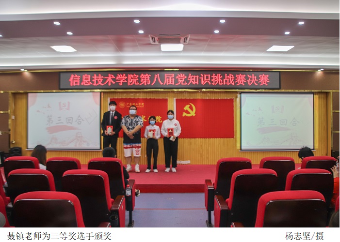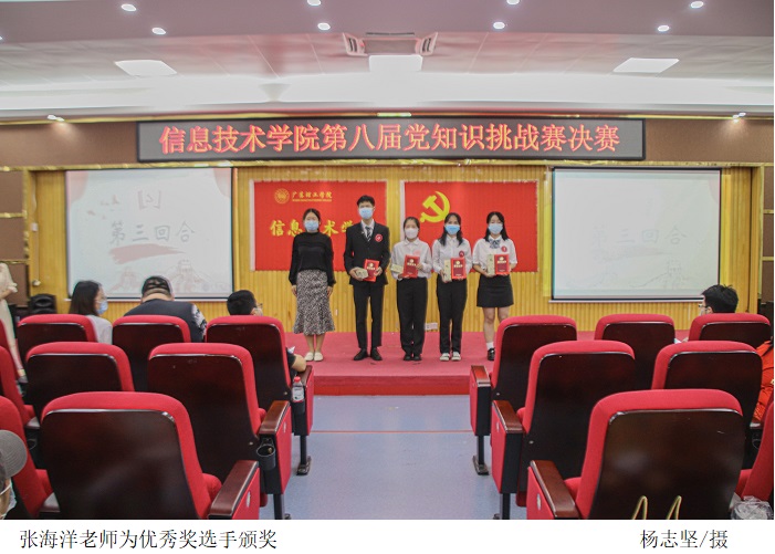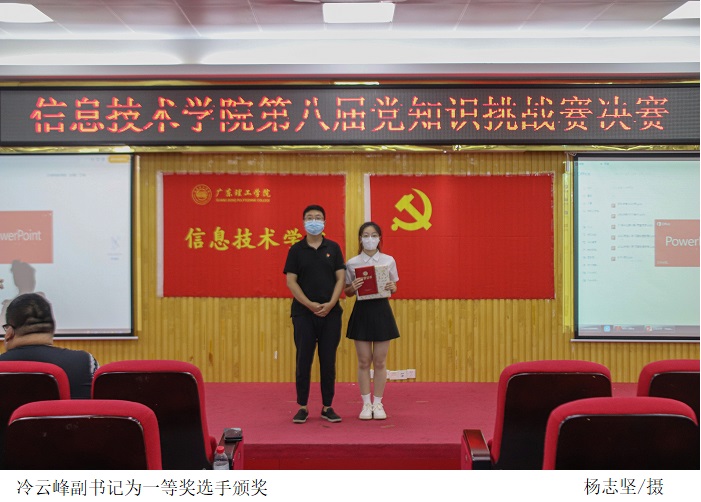 最后,党总支副书记冷云峰祝贺此次取得优异成绩的参赛选手,表示参赛选手展现了青年积极向上、锐意进取的精神风貌和昂扬的斗志,并鼓励同学们要不断提升党史理论修养,在学党史、悟思想、办实事、开新局上下真功夫,为党的发展作出贡献。