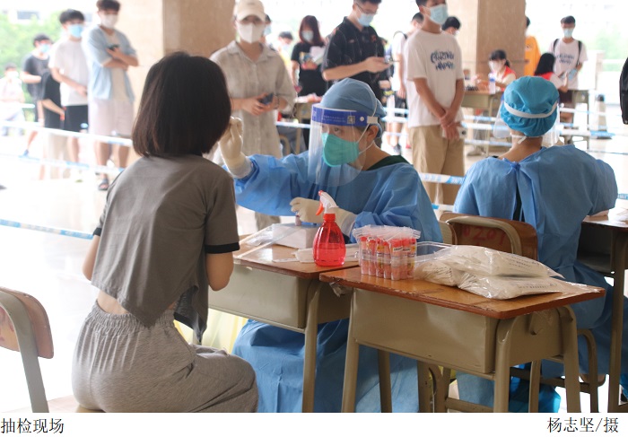 本网讯(太阳网集团tcy8722 严奕信)为严格落实疫情防控工作,保障学校师生的身体健康和生命安全,5月27日上午,太阳网集团tcy8722积极参与核酸抽检工作。