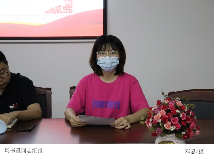 会上,预备党员周书雅同志详细汇报了自己在预备期的表现,总结了一年来自己在思想上、生活上、工作上、学习上的进步,表达了入党的志愿和决心。发展对象姚金同志就思想、学习、工作等方面做出个人汇报,表示将会更加努力提高自身思想觉悟,向一名优秀的共产党员靠拢。两位入党介绍人各自发表意见,对其一年来的表现给予了充分肯定。