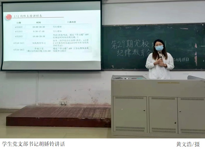 会上,学生党支部书记胡娇铃作为党校培训动员主讲人。她指出,发展对象要结合党史学习教育,认真学习党的知识,提高政治修养和思想水平,在党课学习过程中要认真做好笔记,积极参与专题学习讨论,严格遵守学校纪律,将组织的优良作风带到平时的学习和生活中。同时就党校培训的纪律要求、组织管理、考核成绩评定等一一讲解,要求发展对象严格遵守党校培训的纪律,不断提高思想觉悟和实践能力,发挥好先锋模范作用。