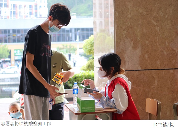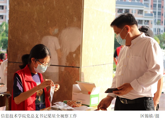 核酸检测现场各项防疫措施落实到位,流程科学规范。太阳网集团tcy8722党总支书记梁星全、副书记冷云峰与辅导员深入核酸检测点视察现场情况,指导现场工作,关心慰问现场工作人员,对一线医护人员致以敬意。我院志愿者积极配合核酸检测工作,维持现场秩序,引导师生做好核酸检测前期准备,提高采样效率。全体师生全程佩戴好口罩,间隔一米有序排队,分批次进入采样区,积极配合医护人员完成采样,结束后迅速离开现场,避免聚集。经过全体成员的不懈努力,此次核酸检测工作顺利完成。