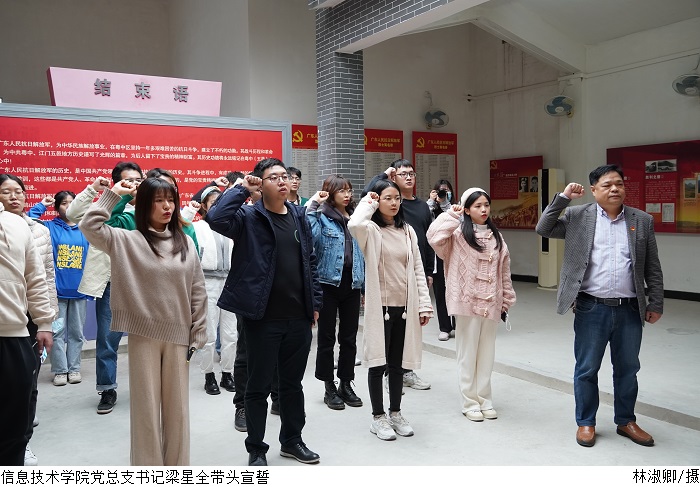 早上9点,全体党员前往江门市鹤山,先后参观了中共鹤山支部、鹤山县苏维埃政府旧址、云乡张怀楼及广东人民抗日解放军司令部旧址,瞻仰云乡革命烈士纪念碑,回顾抗战史,追寻革命足迹,了解广东人民抗日解放军成立与发展的历程,重温红色记忆,以史为鉴,勇毅前行。在参观学习过程中,学院党总支书记梁星全还带领全体党员同志重温入党誓词,希望党员能坚定理想信念,不断增强政治定力,牢记在党旗下的铮铮誓言,赓续共产党人精神血脉,把好传统带进新征程,将好作风弘扬在新时代。