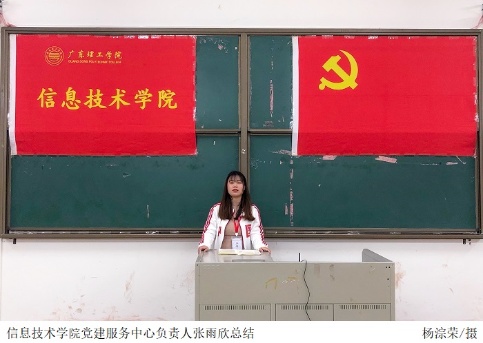 21级干事讲述自己这一年来在组织的收获,并表示会从每一次活动中不断吸取教训、完善自己,真正做到有则改之,无则加勉。各部门部长依次对本学期工作做出分析总结,指出工作中存在的问题和不足,同时表示将会提高部门工作能力,确保高效率高质量完成各项工作。副负责人黄逸宇简要地总结了本学期的工作,且希望在未来日子里各部门能不忘初心,积极投身于每一个工作,铭记为人民服务的宗旨。负责人张雨欣对这一年工作表示肯定,强调全体成员应以更高的要求来鞭策自己,各部门之间要加强沟通与交流,积极协调各项工作,不断创新工作方法。学生党支部书记胡娇铃老师对这学期开展的工作给予表扬,强调各部门要提高工作的完成度和准确性,同时希望党建服务中心全体成员能积极参与到下学期的活动当中。