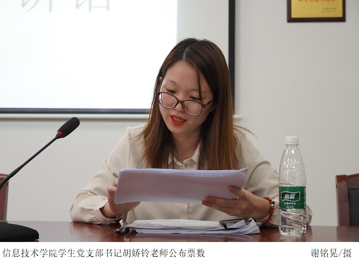 会上,胡娇铃老师介绍会议的主要流程,并表示发展对象要严格要求自己,端正入党思想,做好接受党组织考验的准备。全体发展对象依次上台汇报自己在考察期间的思想、学习、工作等各方面的表现情况,在场党员进行无记名投票,由胡娇铃老师公布投票结果。