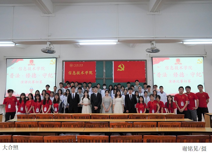 比赛开始,全体师生起立面向国旗,奏唱国歌。主持人宣读比赛规则后,选手们依次上台演讲,围绕“普法、修德、守纪”的主题,结合时事,从小处着眼,从身边的事例说起,用真挚感人的话语表达对学习宪法的理解,用火热的情怀、铿锵的语句、有力的声音深深打动了评委和在场的每一位同学。选手纷纷表示文明校园离不开法律法规的约束,离不开个人的自律,作为一名大学生,宪法知识要牢记,宪法意识守在心。在校内遵守校纪校规,努力做到勿以善小而不为,勿以恶小而为之,更要学习宪法知识,增强法律意识,学会运用法律武器来保护自己的合法权益,做一名“学法、懂法、守法、用法”的好公民。