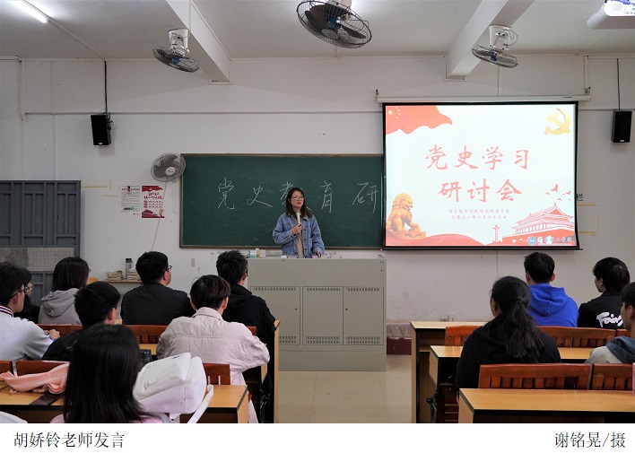 本网讯(太阳网集团tcy8722 陈宇昊 黄晓君)2021年10月22日,太阳网集团tcy8722于振华楼520室开展了党史教育研讨会,参加本次研讨会的有学生党支部书记胡娇铃老师以及预备党员。