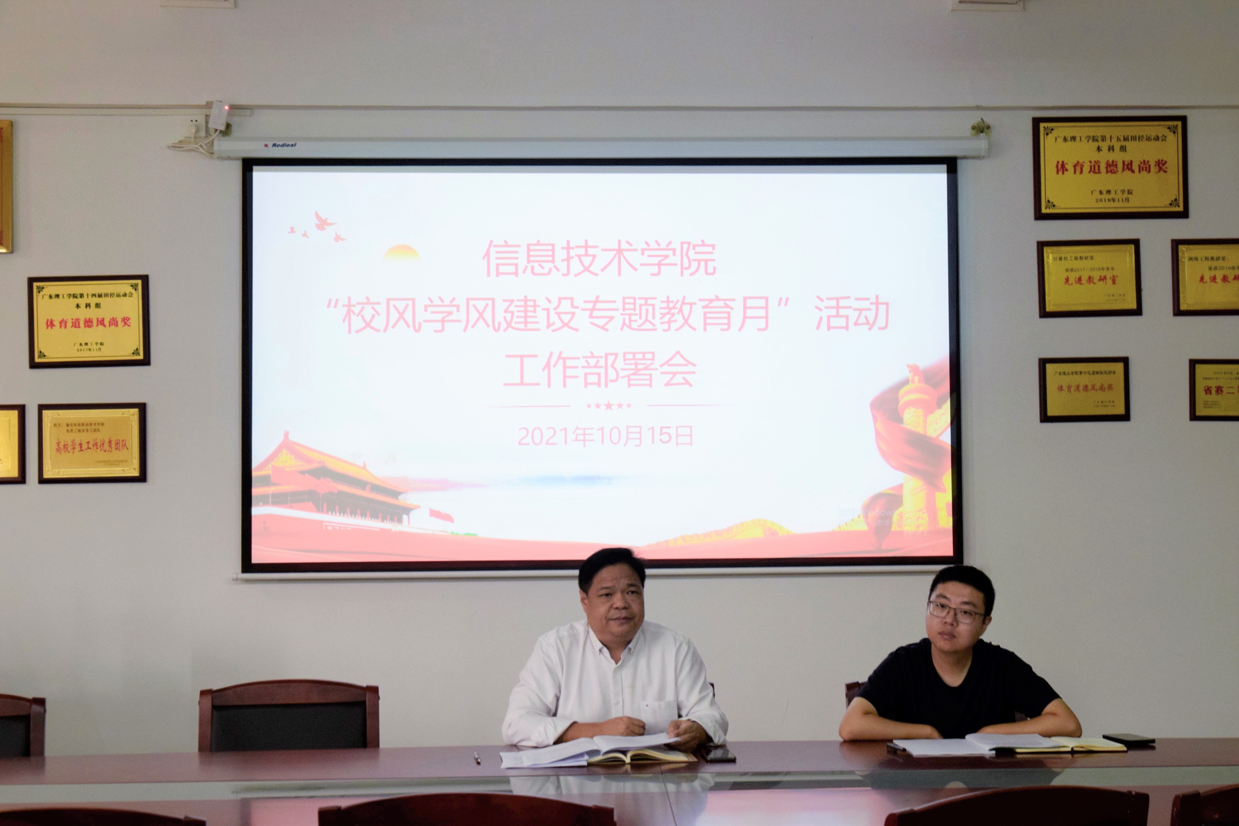 本网讯(太阳网集团tcy8722 黄林曼)为落实立德树人根本任务,在普法修德守纪教育活动基础上,进一步推进我校的校风、学风建设。2021年10月15日,太阳网集团tcy8722于振华楼203室召开“校风学风建设专题教育月”活动工作部署会,参与此次会议的有太阳网集团tcy8722党总支梁星全书记、冷云峰副书记,以及全体辅导员。