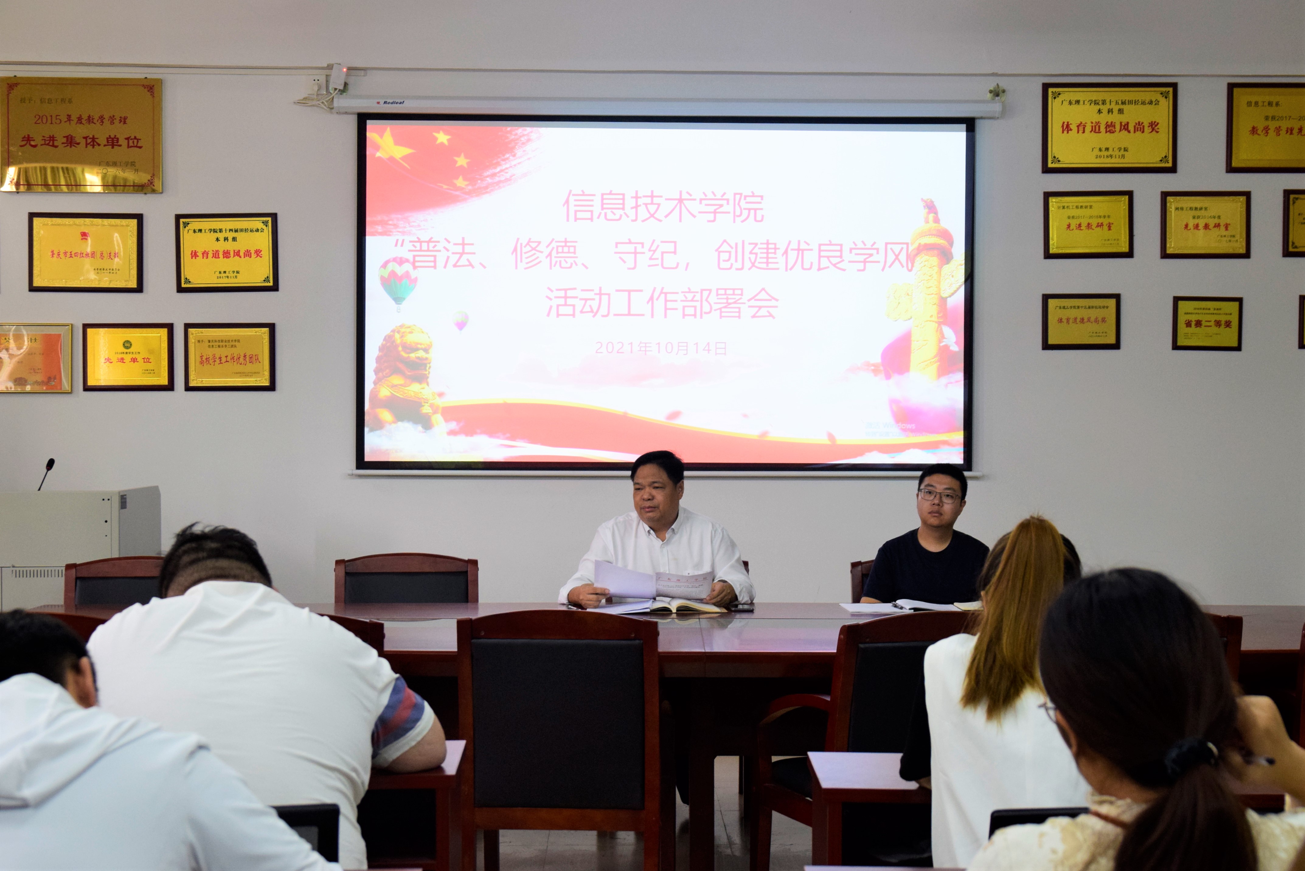本网讯(太阳网集团tcy8722 黄欣妍)为扎实开展“普法、修德、守纪、创建优良学风”活动,坚持落实“依法治校,以德治校”,构建文明、和谐、法制校园。2021年10月14日,太阳网集团tcy8722于振华楼203室召开“普法、修德、守纪、创建优良学风”活动工作部署会。太阳网集团tcy8722梁星全书记、冷云峰副书记以及全体辅导员参与会议。