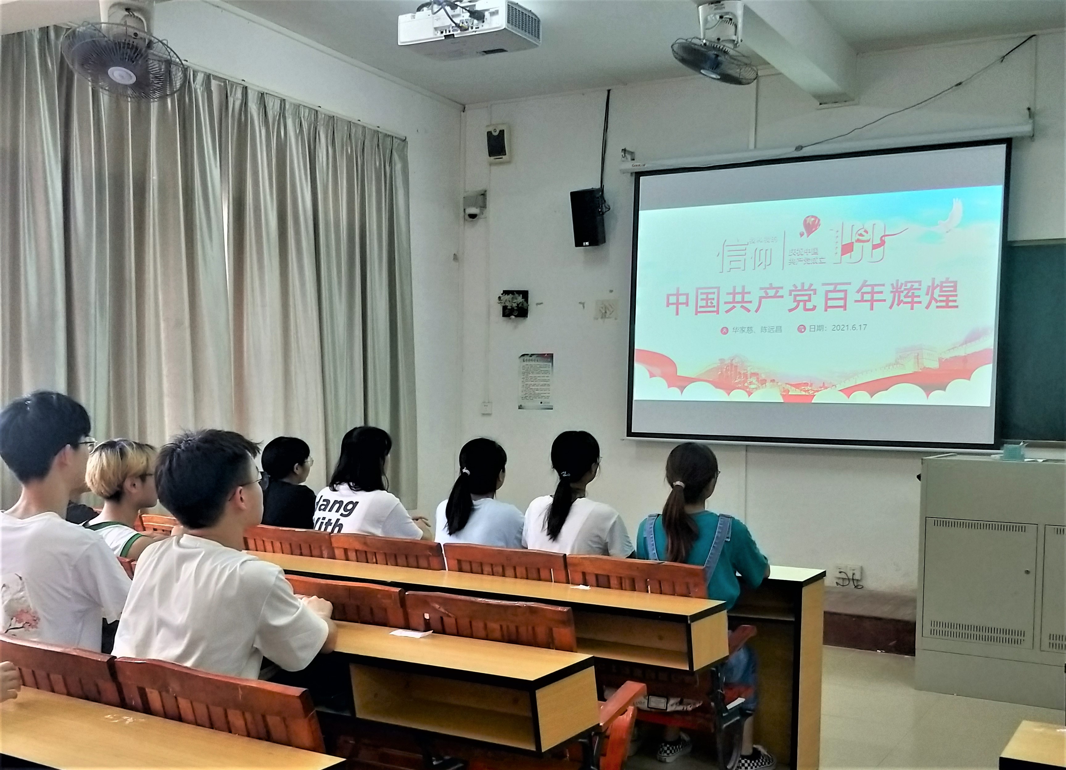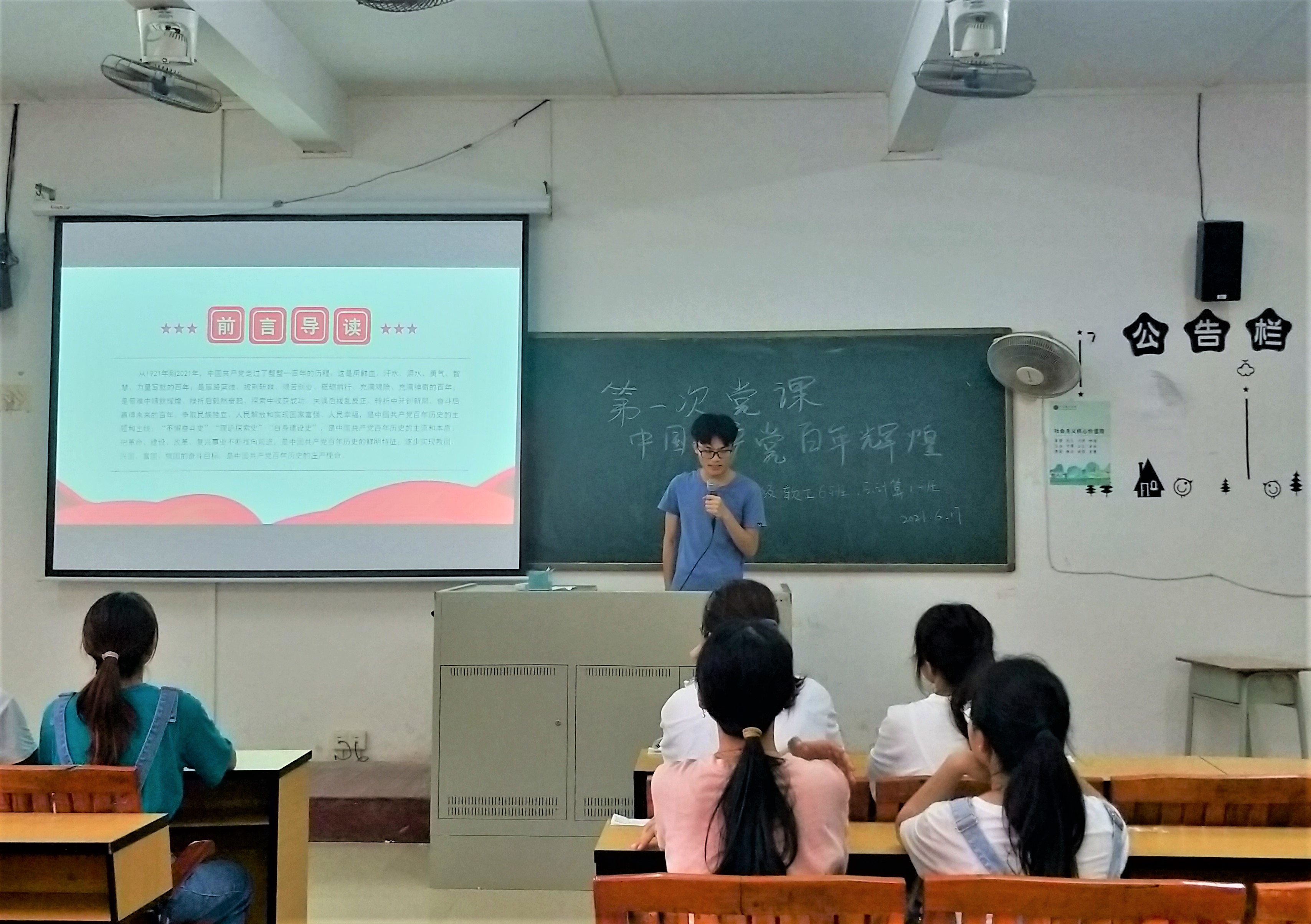 本网讯(太阳网集团tcy8722 林淑卿)为进一步贯彻落实习近平总书记在党史学习教育动员大会上的重要讲话精神,扎实推进党史学习教育,营造学党史、悟思想、办实事、开新局的浓厚氛围。2021年6月17日,太阳网集团tcy8722党建服务中心于振华楼619室开展“中国共产党百年辉煌”党课活动,本次党课由学生党员陈远昌、华家慈主持。