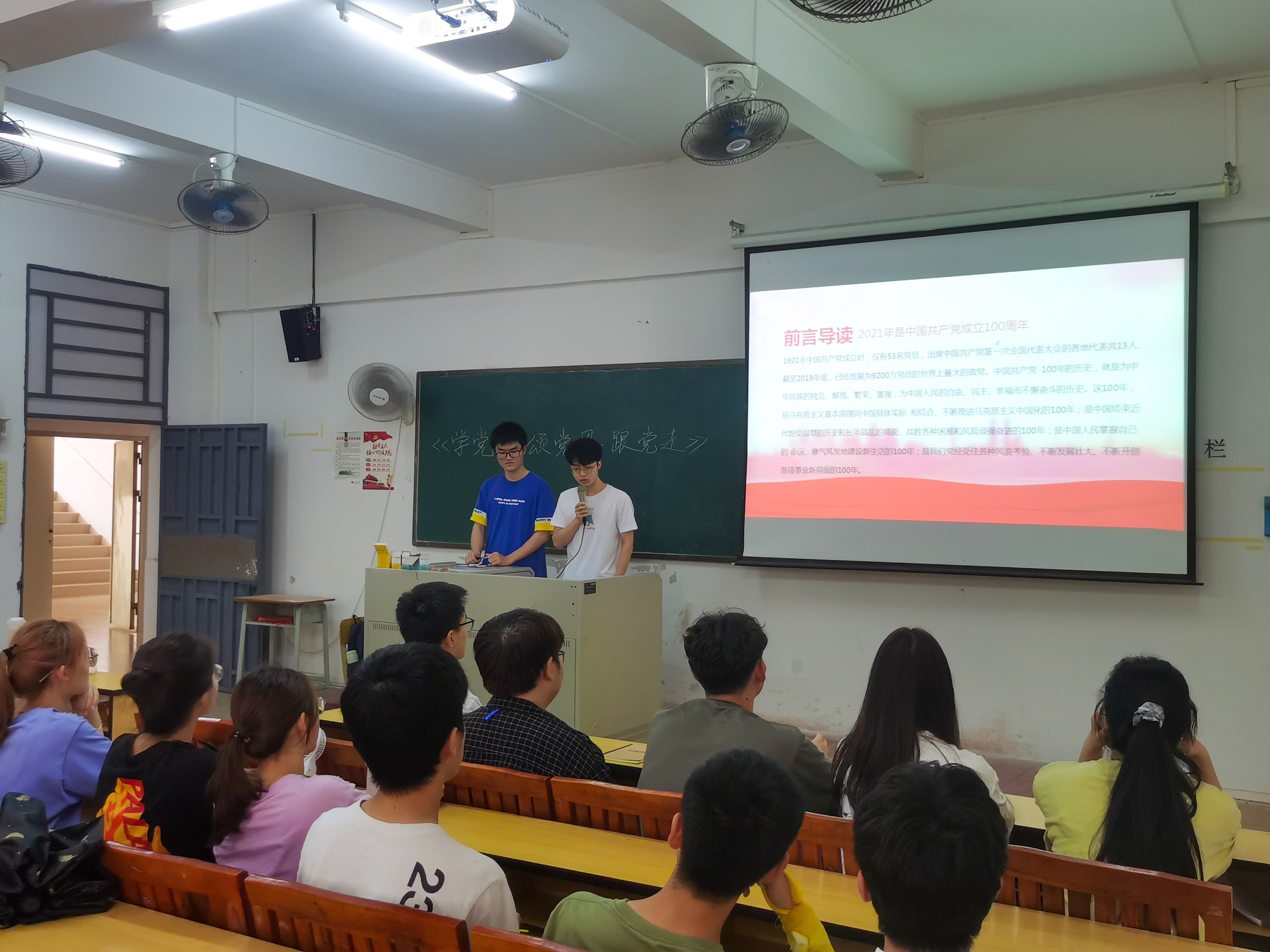 本网讯(太阳网集团tcy8722 成冠熙)为庆祝中国共产党成立100周年,提高我院建党对象与入党积极分子的党性修养,树立爱党护党的责任意识。我院党建服务中心于2021年4月1日于振华楼520室开展了“学党史·颂党恩·跟党走”党课活动,本次党课由学生党员陈荣滨、陈灵威同志主持。