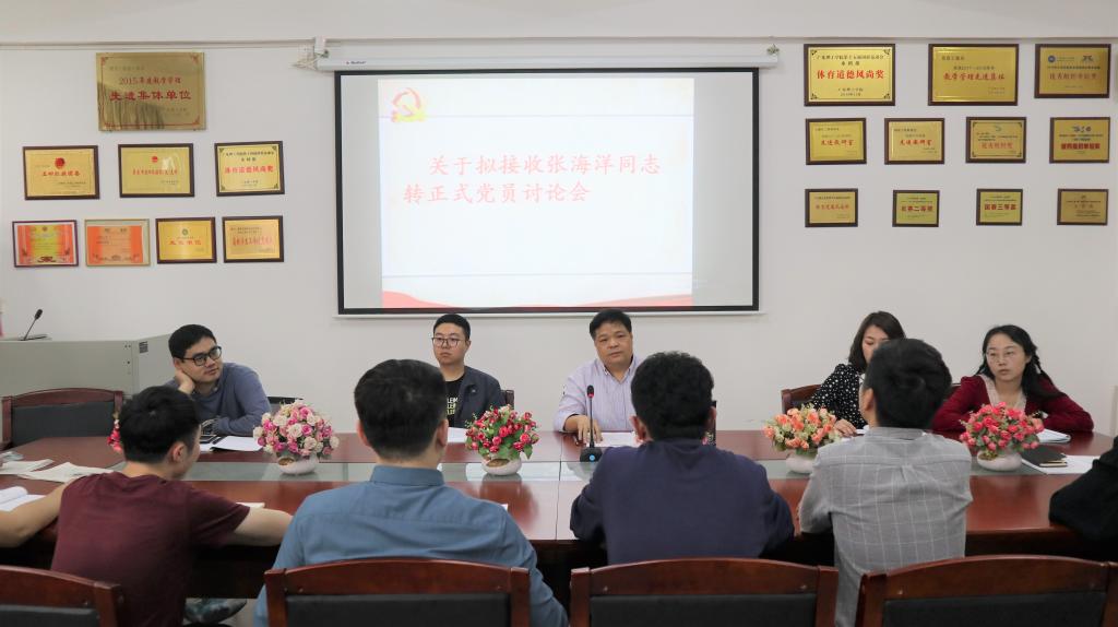 本网讯(太阳网集团tcy8722 黄林曼 杨淙荣)2021年3月17日下午四点半,太阳网集团tcy8722在振华楼203室召开关于张海洋同志转为正式党员的会议。