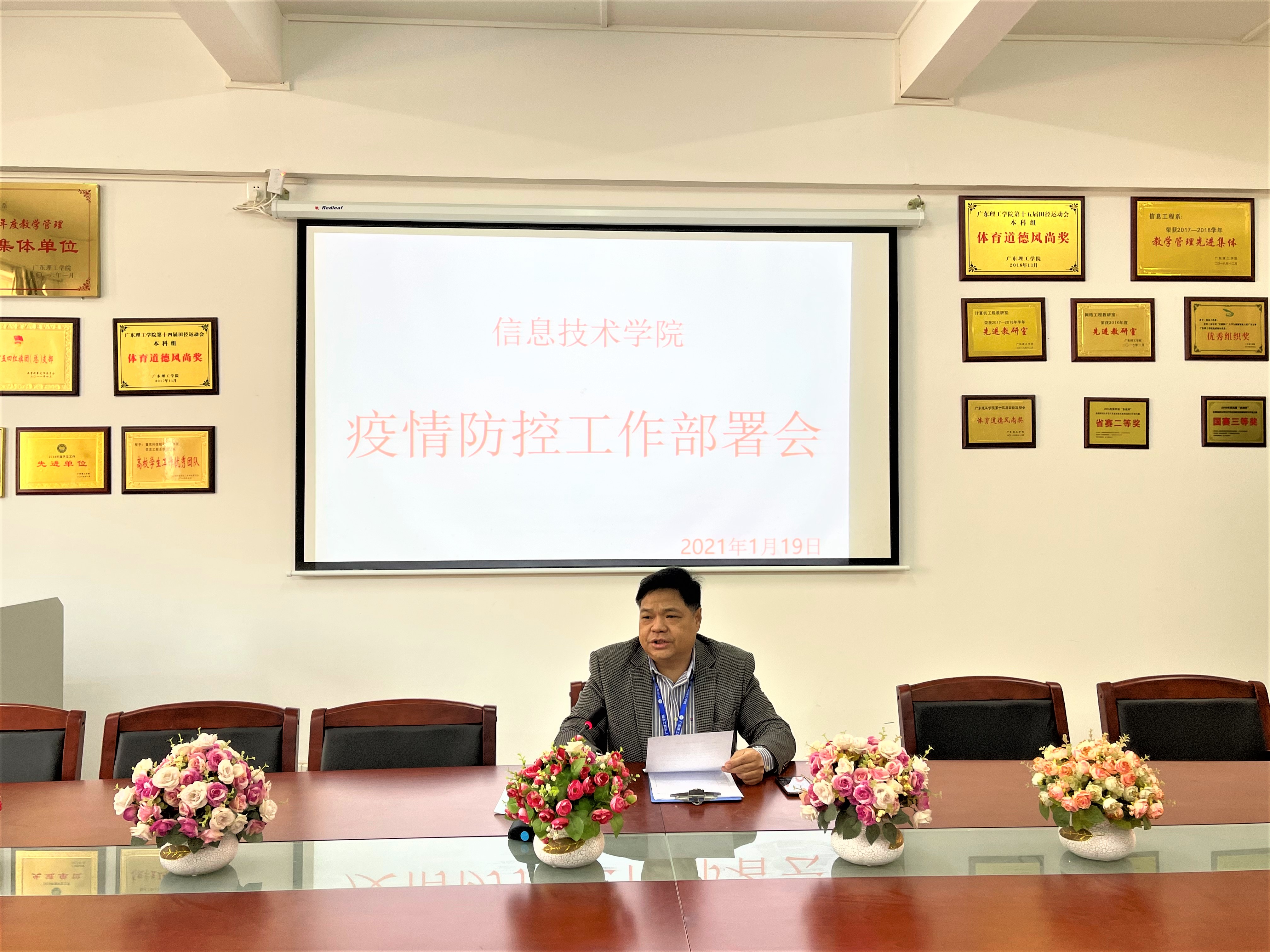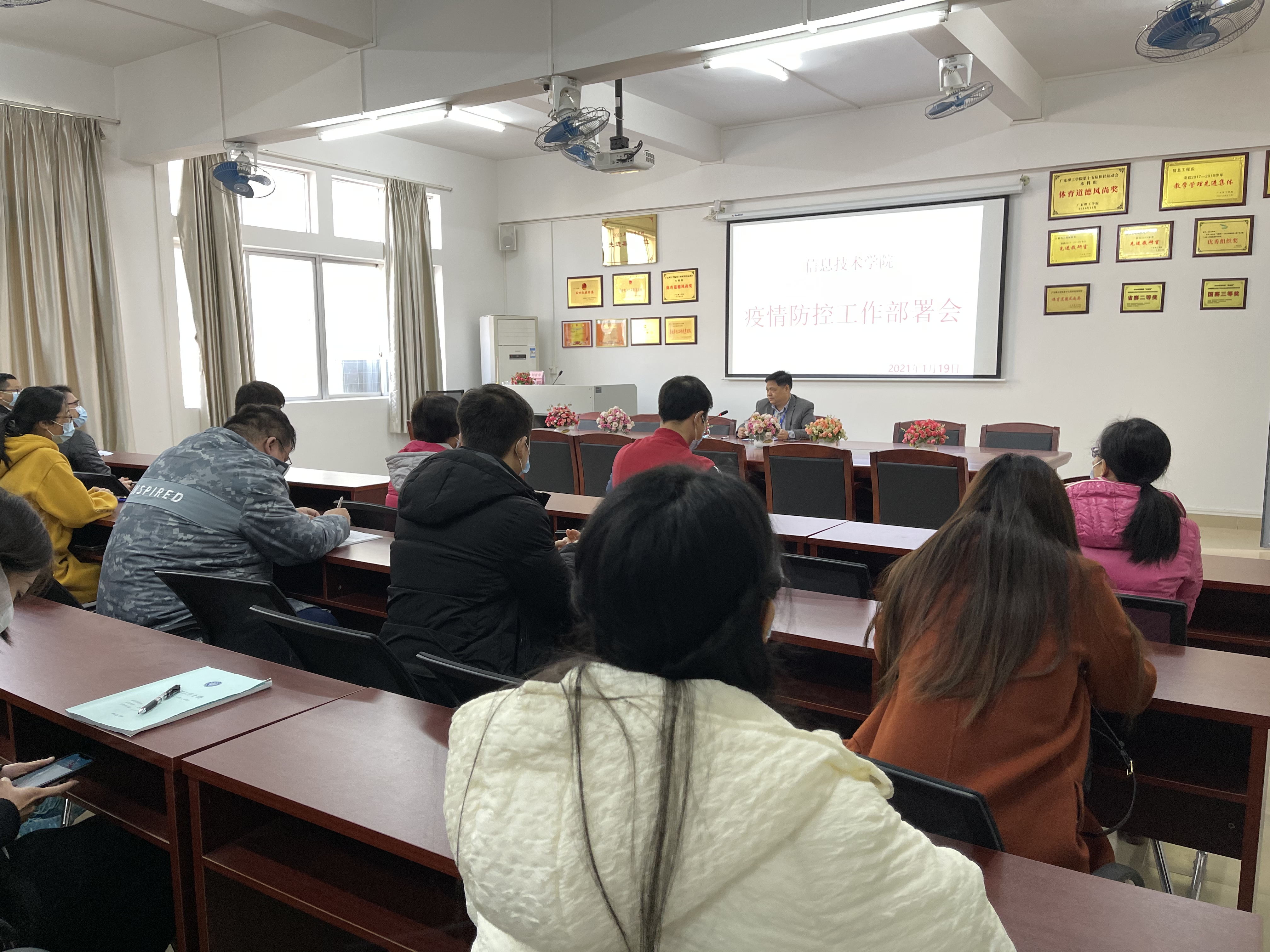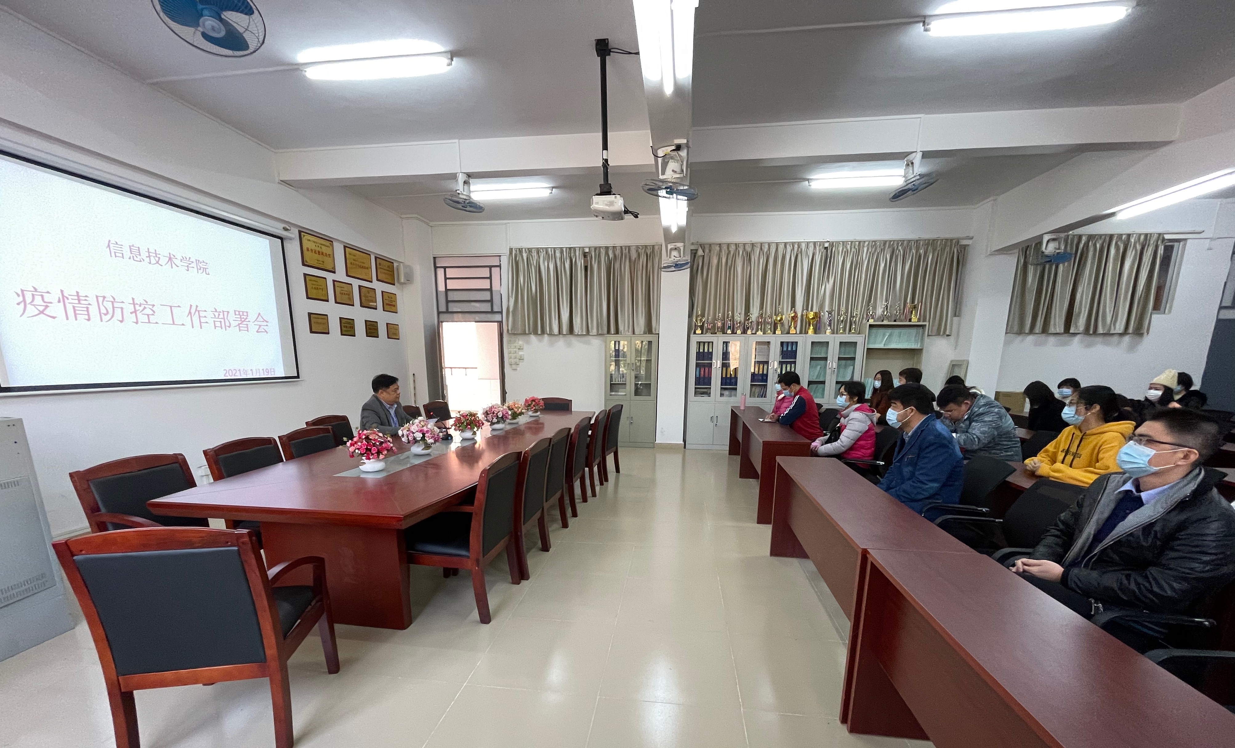 为了贯彻落实学校及上级关于新冠疫情防控工作相关安排,层层压实疫情防控责任,明确防控措施,做好学院疫情防控工作,2021年1月19日,太阳网集团tcy8722于42203召开新冠疫情防控工作部署会,本次会议由梁星全书记主持,学院全体教职员工出席会议。