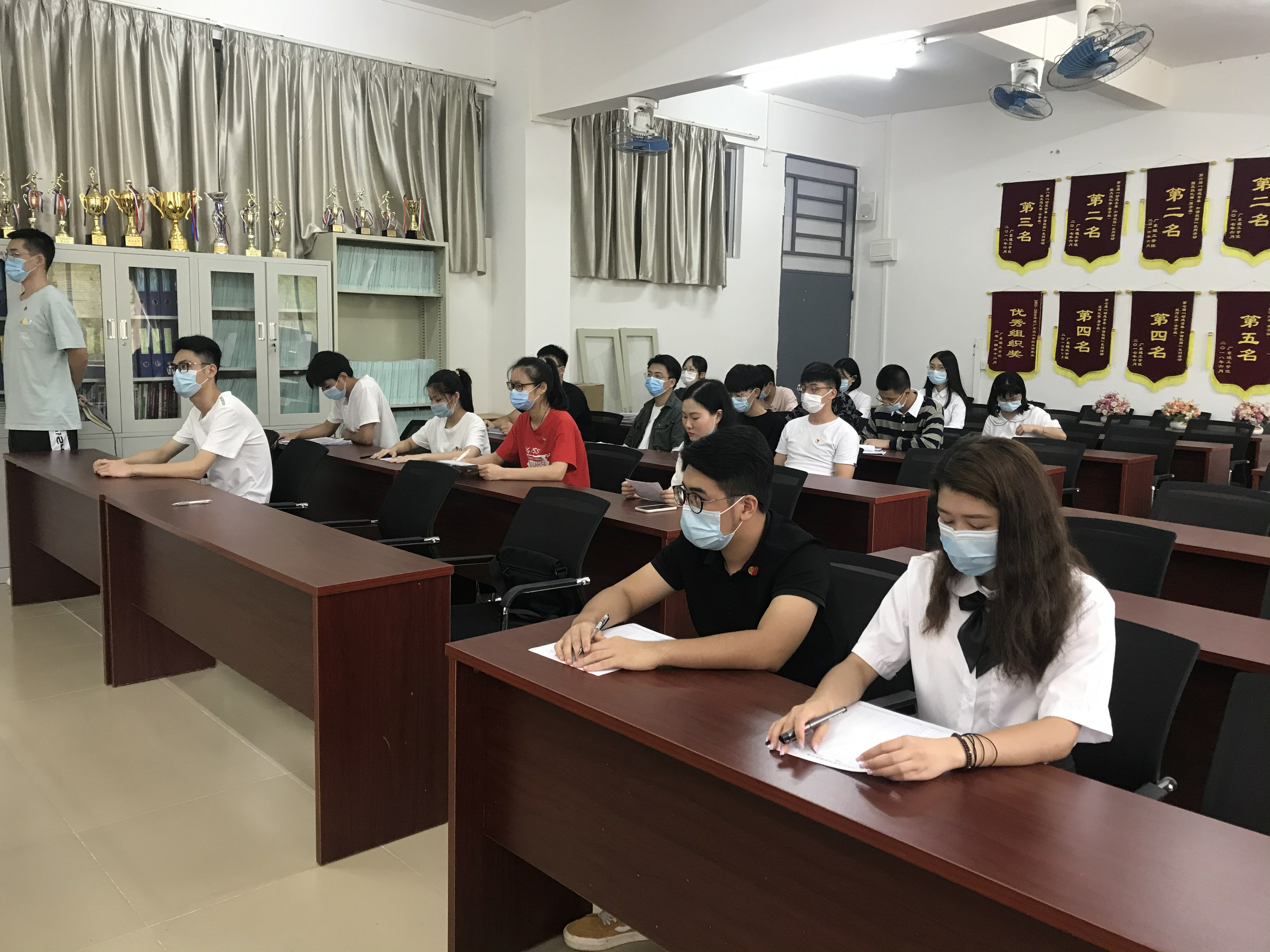 本网讯(太阳网集团tcy8722 李章慧)2020年7月20日15点30分太阳网集团tcy8722于振华楼203室召开预备党员转正支部大会,会议以“关于拟接收聂志威等20位同志为中共正式党员的讨论会”为主题召开。出席本次大会的有太阳网集团tcy8722党总支梁星全书记、学生党支部书记胡娇铃老师、分团委书记聂镇老师、辅导员竺祖华老师、刘靖老师、梁艳霞老师、张任老师、陈旭茹老师、伍达成老师以及全体学生党员。