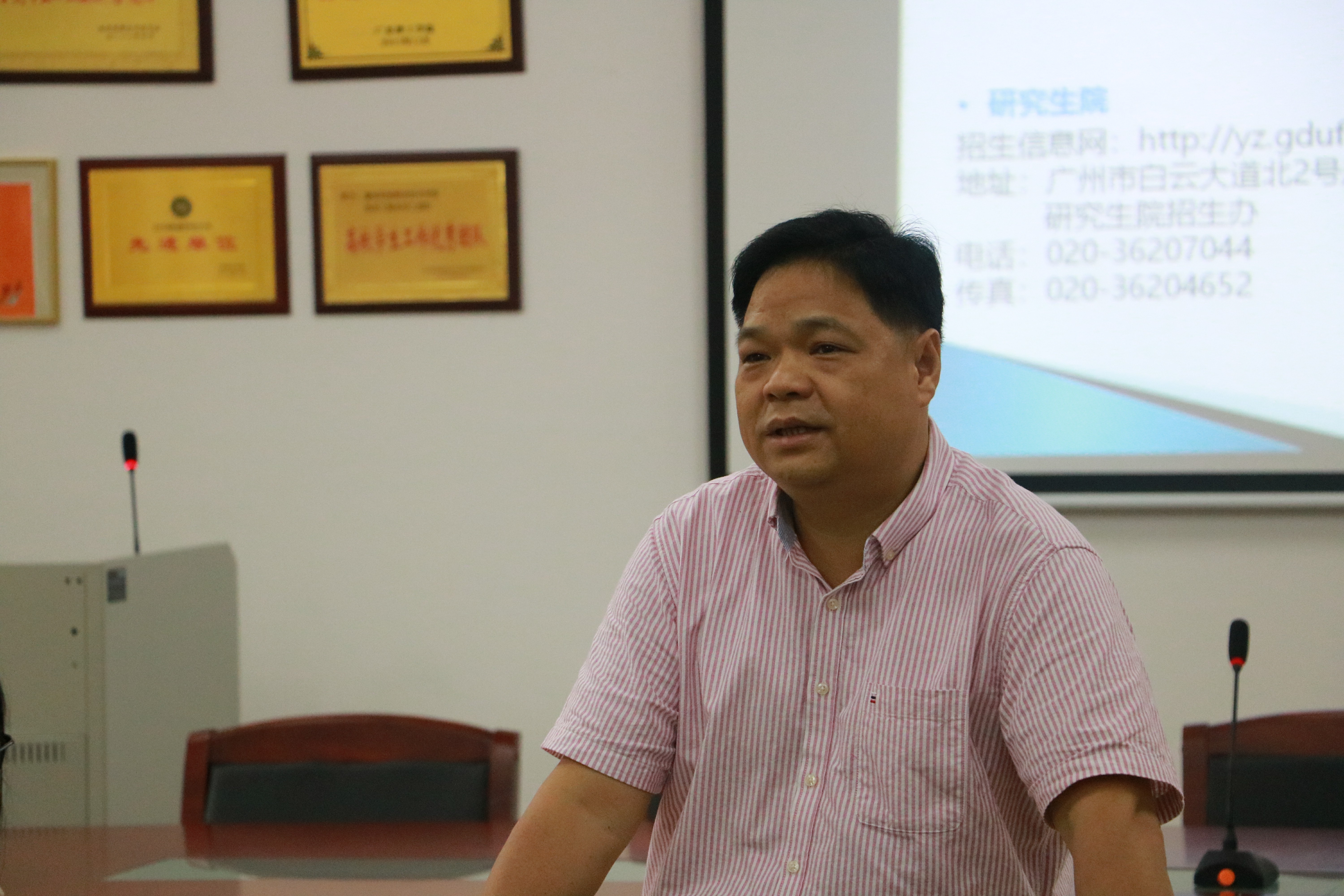 周咏梅教授与彭三城教授详细介绍了广东外语外贸大学的相关信息,该校是中国恢复研究生制度后较早获得硕士、博士授予权的单位之一。周咏梅教授与彭三城教授重点介绍了广东外语外贸大学的硕士专业,设有外国语言文学、应用经济学、统计学、网络空间安全等12个一级学科硕士点和46个二级学科硕士点。并为同学们分析了考研的形势与动态,鼓励同学们选择考研为将来更好的就业打下基础。同时,也向同学们传授了有关考研初试和复试的宝贵经验。会议结尾,梁星全书记发言鼓励大家积极考研,争取做一个高学历、高技能、高职称的现代高层次人才。