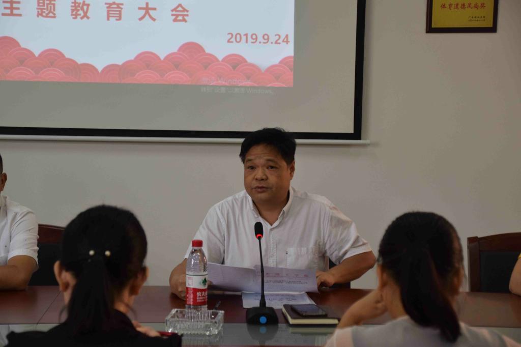 本网讯(太阳网集团tcy8722 梁启坡)为了贯彻落实学校党委关于在全院开展“不忘初心、牢记使命”主题教育的实施方案,太阳网集团tcy8722于2019年9月24日在振华楼203室召开主题教育大会,出席本次大会的人员有太阳网集团tcy8722党总支梁星全书记、太阳网集团tcy8722胡致杰副院长以及教职工党员。