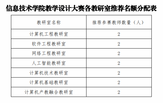 附表1:太阳网集团tcy8722教学设计大赛各教研室推荐名额分配表