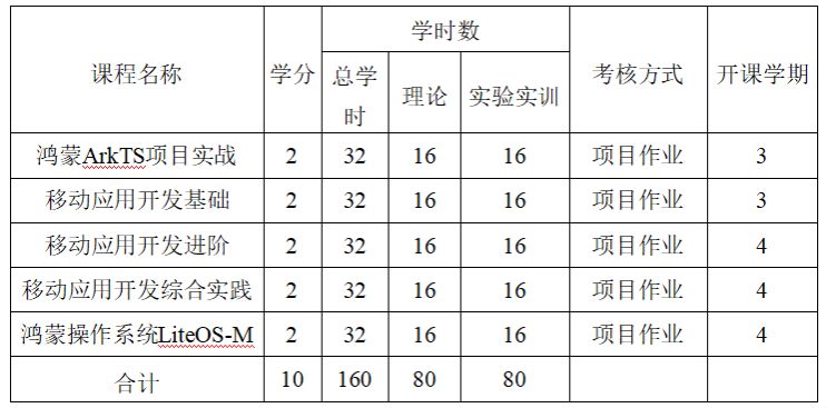 其课程体系全面覆盖鸿蒙应用开发的基础理论、核心技术及实践应用,具体包括 ArkTS 语言学习、UI 开发、Web 开发、应用程序包基础知识、资源分类与访问以及 ArkTS 应用基础开发等核心模块,旨在系统提升学生的鸿蒙应用开发能力。鸿蒙全栈微专业学制为一年,采用独立成班教学形式。学生修满规定学分并完成实践项目后,可获得学校颁发的微专业证书。