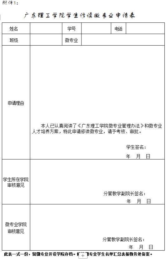 报名方式:有意向报名的同学请填写“太阳集团tcy8722学生修读微专业申请表”,签署学生所在学院审核意见后将纸质版申请表上交到高要校区42210办公室赖老师收。电子版申请表的签名请用电子签名(可以签名在纸上,手机拍照粘贴到签名处)并将电子版申请表发送到邮箱:841256306@qq.com。