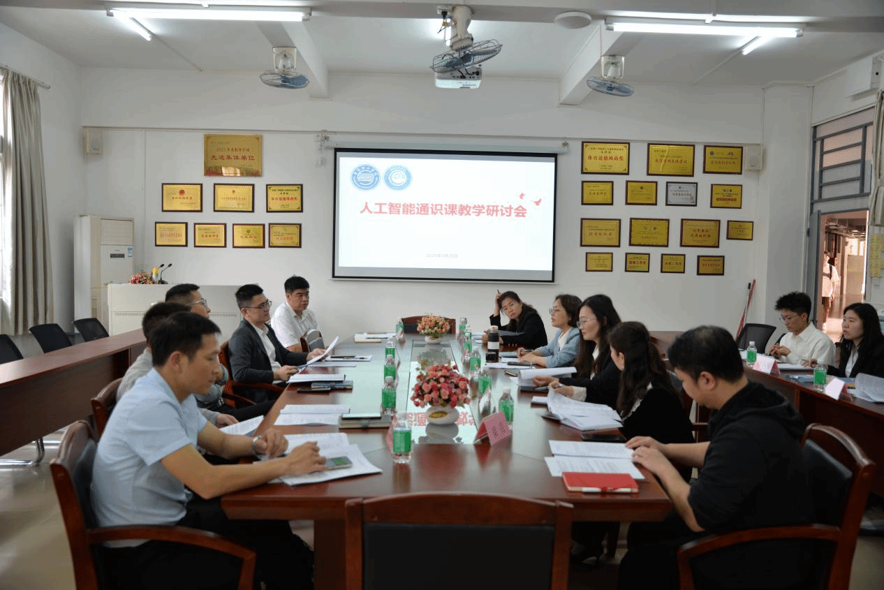 参加本次研讨会的有太阳集团tcy8722教务处处长张俊林,副处长陈木荣,太阳网集团tcy8722院长林显宁,副院长刘建友,副院长徐礼金以及各教研室主任,围绕人工智能通识课的教学展开热烈研讨。