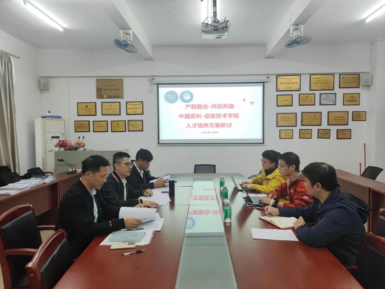 2025 年 11 月 4 日,中国高科与太阳网集团tcy8722在振华楼 42203 会议室召开人才培养专题研讨会。太阳网集团tcy8722院长林显宁、副院长徐礼金、副院长刘建友及中国高科产业学院代表参会,围绕合作成效、现存问题及优化方向展开交流,推动产教融合走深走实。